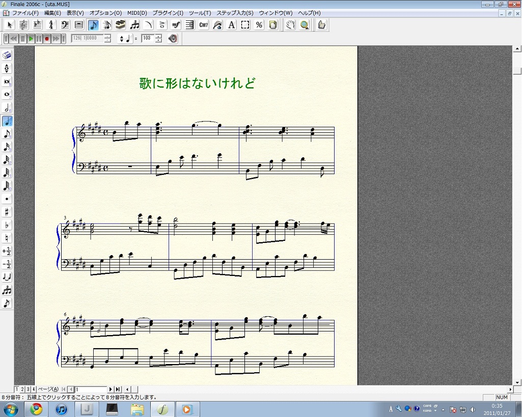 さて、「歌に形はないけれど」の方ですが、現在アレンジがようやく7割ほどといったところです;